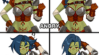 Welcome to the sneak peek series! I'll be dishing out bite-sized nuggets of work-in-progress goodness for the game! Check out a sneak peek of Arig's expressions =w= She's an ogre blacksmith who may se...