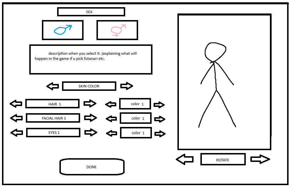 - Next up, my new coder and I are tackling the character creation system. Check out this awesome sketch I whipped up: